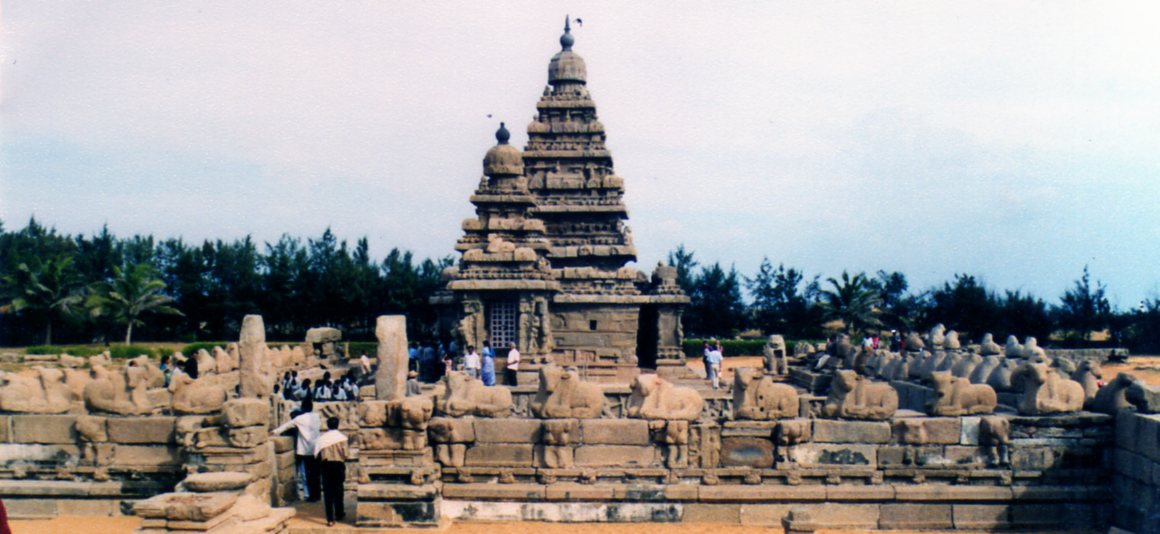 Le Temple du Rivage : consacré à Shiva , il a résisté à 12 siècles d’érosion par les pluies de la mousson et les vagues de l’océan .