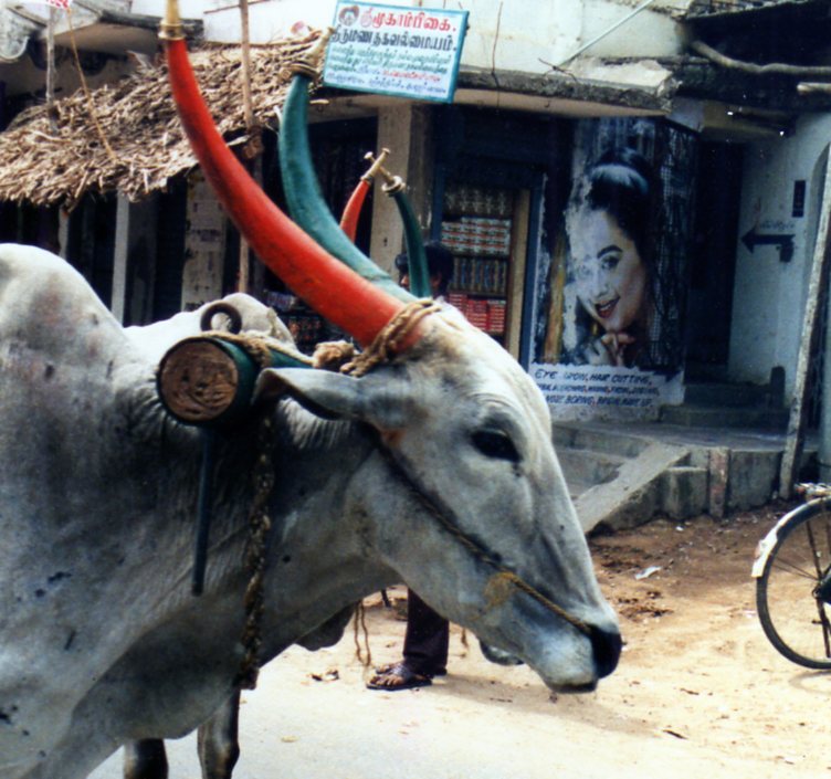 ” la vache est la mère de l’univers “, univers qui était à l’origine un océan de lait. On ne mange donc pas sa mère. “On ne jette pas sa mère. On la garde jusqu’au bout. Elle nous a nourris, nous lui devons tout . On considère même que le lait, l’urine et la bouse de la vache sont des éléments purificateurs. Dans pas mal de villages, on peut voir encore les paysans enduire le seuil de leur demeure d’un liquide à base de bouse et d’urine de vache. Il paraît que la mixture a des vertus pesticides.