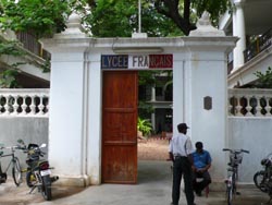 Nous ressortons aussi discrètement … après cette visite du lycée du comptoir français de l’inde .