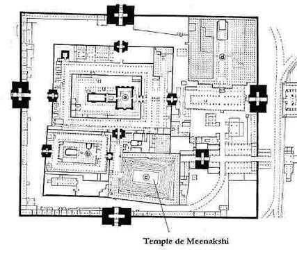 On pénètre dans la cour par un gopuran haut de 30 mètres .
