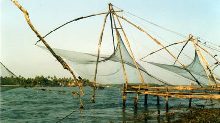 La plage est un véritable campement des pêcheurs qui lancent leurs filets en équilibre sur deux troncs d’arbres qui leur servent d’embarcation .