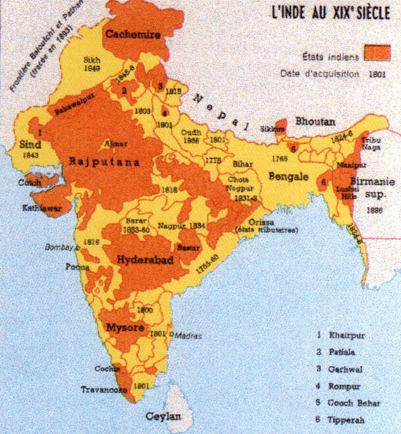 Nous voyons la taille respective des états de Mysore , d’Hyderabad , et du Rajputana .....