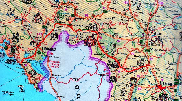 Quand nous quittons Sveti Stefan et la côte adriatique c’est un peu l’angoisse car sur notre carte routière à partir de la ville de Pec …il n’y a plus qu’un pointillé sur la carte routière …autrement dit plus de route !