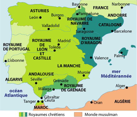 Les musulmans envahirent l’Andalousie en 711 lorsque le conquérant berbère Tariq ibn Ziyad arriva par le détroit de Gibraltar.Les Maures, c’est-à-dire le peuplement berbère arabisé, installés après la conquête se maintinrent dans le sud de la péninsule jusqu’en 1492, année où ils furent chassés de Grenade.