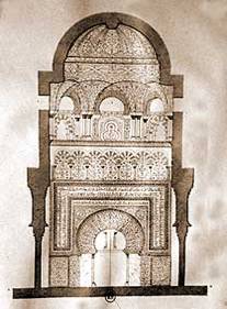 Le mihrab est une niche qui indique la direction de La Mecque (la qibla) vers laquelle le croyant se tourne pour prier. Dans la mosquée de Cordoue, le mihrab est précédé d’une maqsura (enceinte réservée au calife), construction complexe faite d’arcs polylobés superposés et entrecroisés. Le décor de la façade à coupole de marbre est dû, en partie, à des artistes byzantins.
