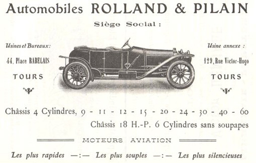 Rolland-Pilain est une marque automobile française fondée en 1906 à Tours en Indre et Loire par François Rolland, riche propriétaire, passionné d’ automobiles et Emile Pilain, jeune technicien de 25 ans, et surtout plein d’idées novatrices qui feront le renom de la marque comme les premiers freins hydrauliques l’entreprise.