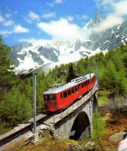 Arrivés à la gare de Montenvers , nous allons nous rafraîchir au café en attendant le train .Papa croyant que la gare annonçait au haut parleur le train , nous manquons le premier train . Nous attendons vingt minutes puis nous prenons le second . Nous redescendons et reprenons notre voiture pour revenir au terrain de camping .