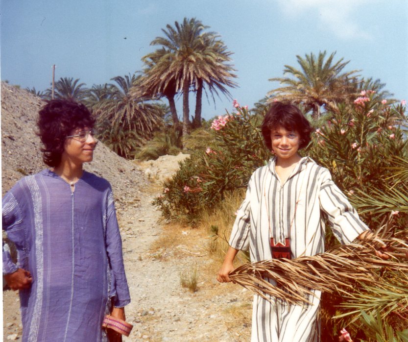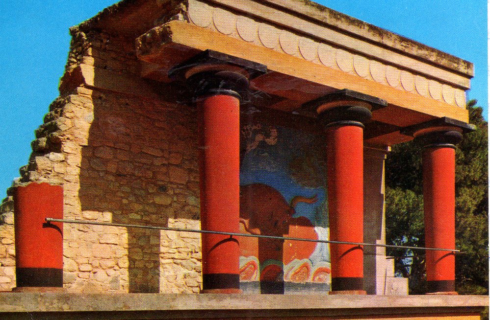 Papa nous choisit (Jean-Marc et moi ) deux pipeaux à un charmant vendeur qui les fait lui-même . Maman ouvre une boite de maquereaux . Nous repartons mais cette fois nous sommes bel et bien perdus . Nous nous apercevons que le parking sur lequel nous avions mangé était celui des ruines . Nous nous regarons et nous entrons dans les ruines . Maman lit dans le guide : le travail de reconstitution est mieux fait qu’à Knossos. Papa ,Jean-Marc et moi protestons : les toits d’anciennes boutiques sont reconstitués en béton . Nous visitons quelques unes de ces anciennes boutiques , à lo’intérieur je vois de grandes jarres . J’admire les puits qui donnent l’impression que les gens manquaient d’eau . Nous arrivons sur la place où se déroulaient les jeux et les danses . Le soleil tape . Courageusement nous arrêtons la visite et allons nous rafraîchir à un café . Papa Maman et Jean-Marc prennent des glaces , moi une bouteille d’orangeade .
