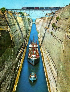 Nous trouvons la place Omonia ( la plus grande place d’Athène ) . Papa prend la direction de Corynthe ; Un péage nous attend car c’est une autoroute (une autoroute en Grèce c’est une Nationale qui ne traverse pas de village )