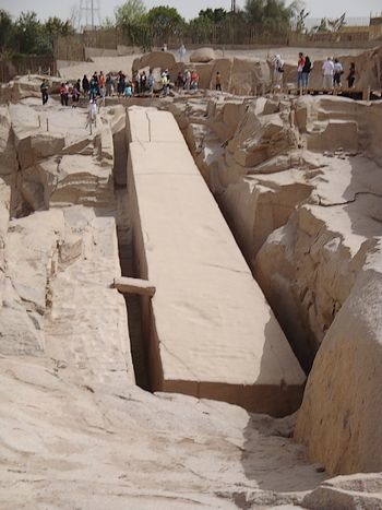 Dans une grande carrière de granite repose l’obélisque inachevé, dont la taille a été abandonnée à la suite d’une fêlure dans la roche. C’est le plus grand de tous les obélisques connus à ce jour. Long de près de 42 mètres, il est taillé sur trois faces, mais pas du tout poli ni gravé.