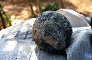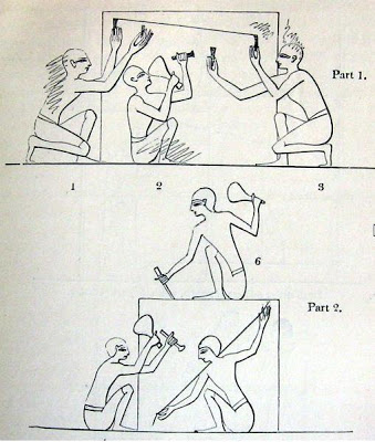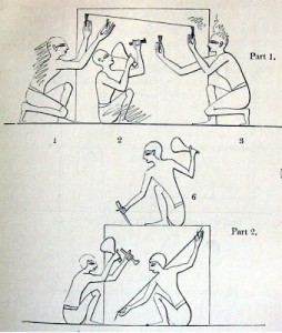 On choisissait d’abord un banc rocheux homogène et dépourvu de toute fissure, puis on aplanissait sa surface par l’application de briques chaudes brusquement refroidies à grande eau. Le granite était alors damé sans relâche à l’aide des boules de dolérite ( la dolérite est le nom que prend le basalte quand il ne contient pas de verre) . Ces boules pèsent couramment 5 kg, et mesurent 15 à 30 cm de diamètre. Elles permettent de pulvériser, en une heure de travail, le granite d’Assouan sur une épaisseur de cinq millimètres .