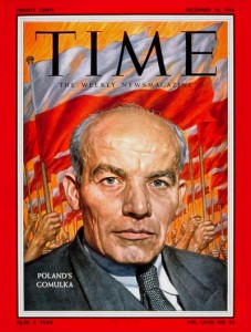 programme de libéralisation. Entre-temps, la pression de l’Union soviétique a fait régner la terreur, a poussé une industrialisation à outrance, a suscité des procès et des envois en masse au goulag, et la collectivisation forcée a été un échec. En 1956, la Hongrie se soulève, aussitôt des ouvriers se mettent en grève à Poznan. Dans ce contexte Khrouchtchev doit accepter que Gomulka applique un socialisme à la polonaise, qui autorise à doses homéopathiques des conseils ouvriers dans les usines. Mais la libéralisation n’est qu’apparente.