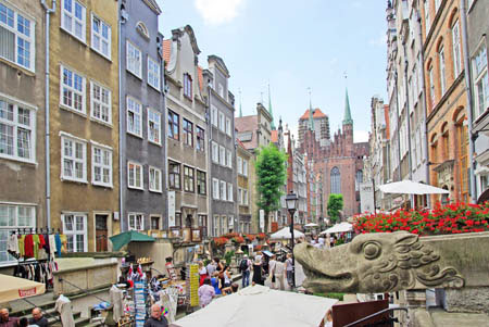 D’ordonnance médiévale, Gdansk séduit par le charme de ses ruelles, nous pénètrons dans la ville par la pittoresque porte Mariacka d’ou part la rue du même nom , pavée de petits carreaux de granit, avec ses maisons aux perrons richement ornés et ses élégantes boutiques de bijoux en ambre.
