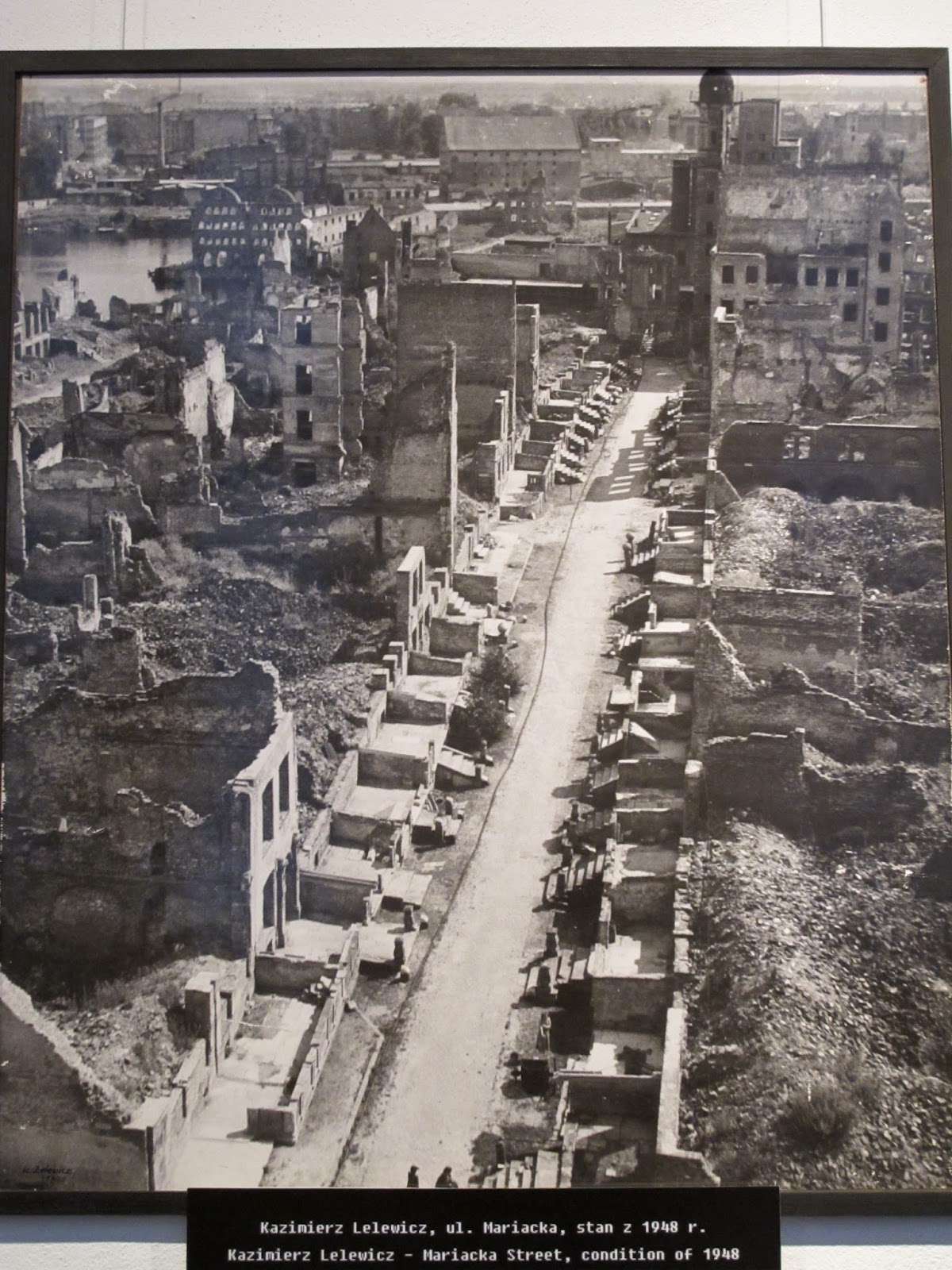 Avant de quitter Gdansk nous pouvons apprécier le travail de reconstruction de la ville avec cette photo des ruines de la ville .