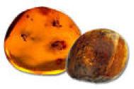 En tombant sur le sol, la résine a emprisonné des débris végétaux et animaux constituant un véritable piège pour ceux-ci (les insectes composent 90% des inclus.