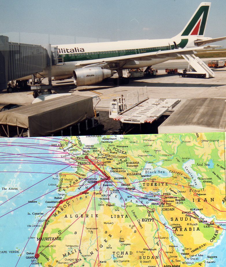 Le choix de la Compagnie aérienne Alitalia présentait le défaut majeur de passer par Rome , pas très logique pour rejoindre un pays à l’ouest de l’Afrique .