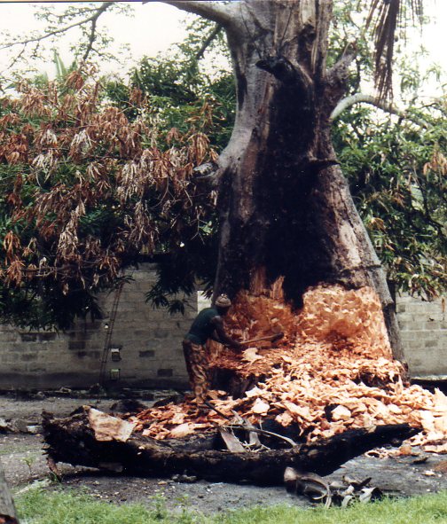 L’arbre jeune a le tronc couvert d’épines assez grosses, mais l’arbre âgé possède lui un tronc lisse avec souvent des racines palettes de plusieurs mètres de haut !!! , ce qui le rend proprement spectaculaire.