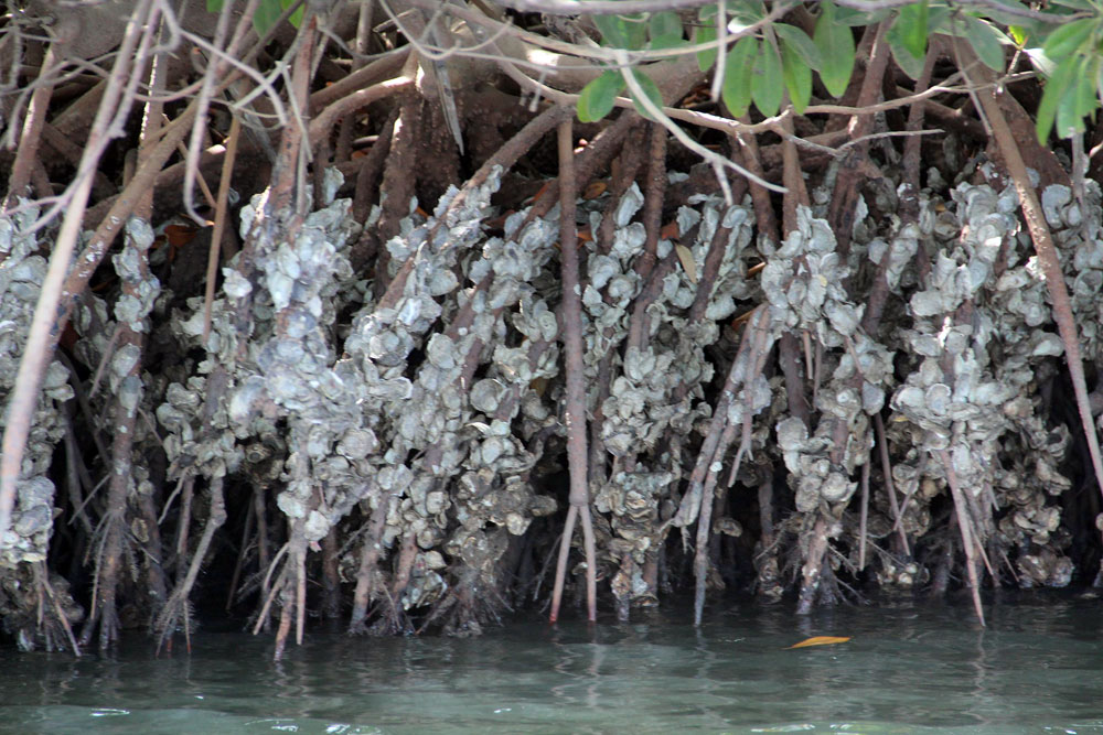 Dans ce milieu propice, les femmes vont à marée basse chercher des huitres sur les racines de palétuvier, des moules sauvages et des bulots parfois énormes.