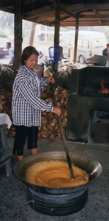 Au retour notre guide nous fait visiter une fabrique de sucre de noix de coco .