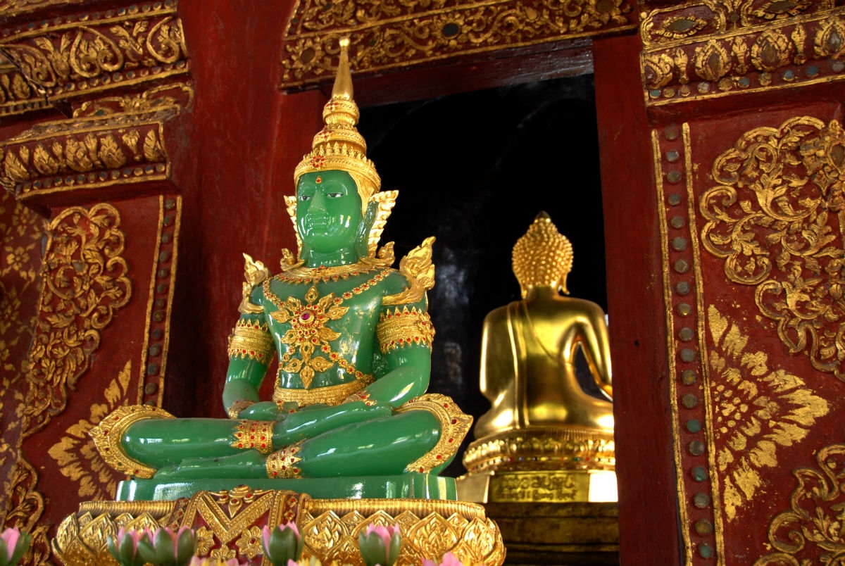En 1434 , la foudre avait éventré un ancien « chédi » et on y avait découvert un Bouddha de stuc recouvert de feuilles d’or . La surface de la statue se craquela , laissant apparaître de la « jadeiste » .Le roi de Chiang Maï voulant récupérer la statue la chargea sur un éléphant qui refusa de prendre la route de Chiang Maï , le roi devant ce signe de volonté divine , laissa le bouddha à Lampang ou le Wat Phra Kaeo Don Tao fut construit .
