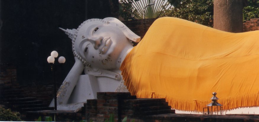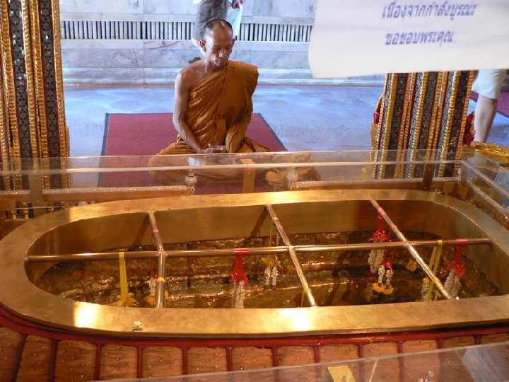 En 1500 , le Roi Thibodi plaça dans l’un des sanctuaires une statue du Bouddha en bronze recouvert d’or de 16 mètres de haut