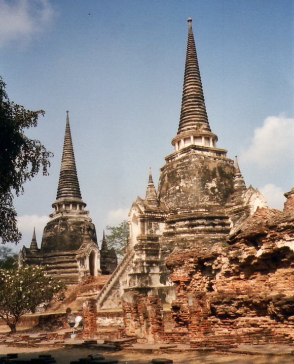 Au nord-ouest de l’ile , les trois grands Chedî édifiés au 15 ème siècle symbolisent les trois premiers rois qui régnèrent ici ( Wat Phra Sri Samphet ) .