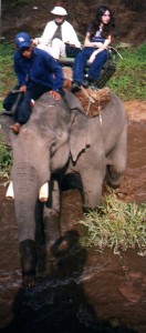 Lors de notre retour vers le sud , nous faisons halte au Camp d’Eléphants de Taeng Dao . Ce centre offre un double intérêt une promenade à dos d’éléphants et une démonstration de dressage .