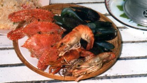 Les deux photos montrent le menu de fruits de mer dégusté sur la plage de sable blanc !!!!!!!!!