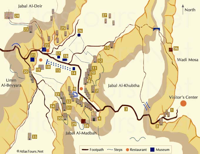 La ville s’étend dans la rivière dite de Moïse d’où provient le nom actuel de Wadi Moussa .