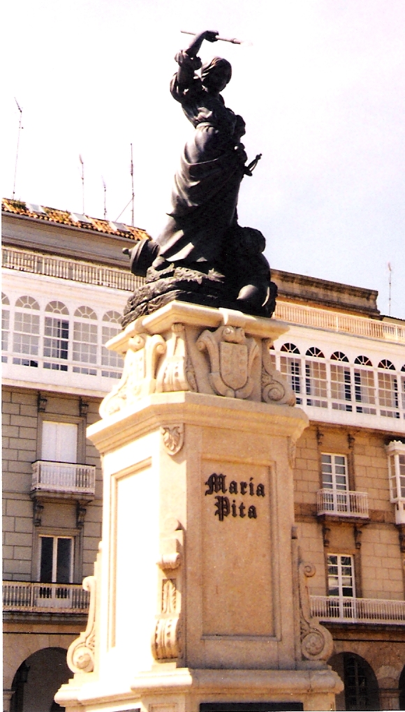 En 1589 , le corsaire anglais Drake attaque la ville , les premiers corsaires escaladent les remparts , mais Maria Pita veille , elle renverse l’assaillant et donne l’alerte , la ville est sauvée .