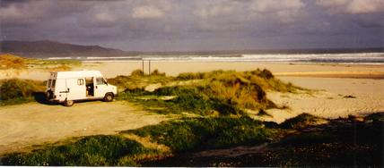 Plus nous allons vers l’ouest , plus la côte devient sauvage , nous prenons des petites routes…ou plutôt chemin et nous décidons de passer la nuit au dessus de la praya de Traba à Beano
