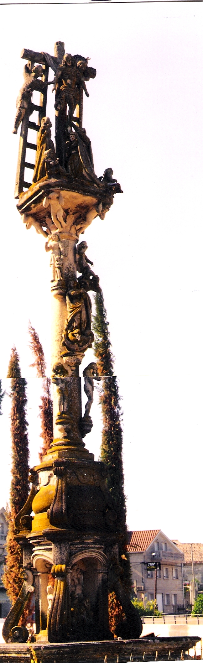 En face de l’église nous admirons le calvaire sculpté , le plus beau de Galice sculpté par José Cervino .