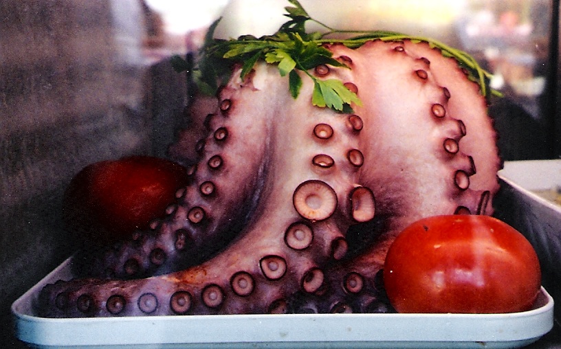 Les photos en couleur sont très utiles pour commander …mais les « mariscos » sont également exposés en vitrine , comme cette magnifique pieuvre .