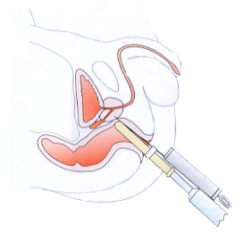 effectuée par l’anus ( même au moyen-âge on n’avait pas inventé une pareille torture ) : le petit dessin suivant donne une idée de « l’opération » . - En Mai 2001 , au terme de ma préparation à ce traitement je me présente dans le bunker des « rayons » avec une croix tracée sur mon pubis à l’emplacement de ma « prostate » .
