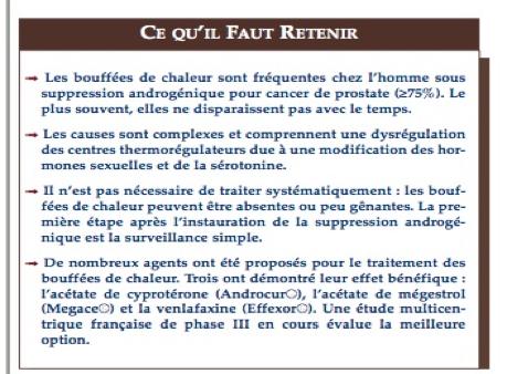 - De plus mon traitement est complété par une injection tous les six mois d’Eligard : L’acétate de leuproréline est un nonapeptide de synthèse, il entraîne une inhibition de la sécrétion des gonadotrophines hypophysaires et une suppression de la synthèse des stéroïdes testiculaires chez l’homme (excusez le jargon ! ). Ce traitement entraîne des « bouffées de chaleur » .