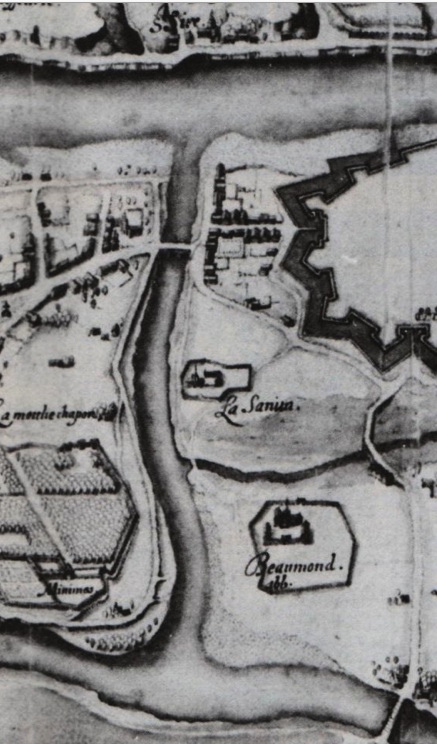 Vers 1530, face à la multiplication des épidémies (peste, choléra…) on construisit à Tours un sanitas (en latin « santé »), baraquement en bois au bord du ruau Sainte-Anne, à l’ouest de la ville, au milieu des marais. Un siècle plus tard, plus que maladies et épidémies, ce sont la pauvreté et la mendicité qui font des ravages : l’économie de Tours périclite. En 1641, Louis XIII accorde à la ville un montant annuel de 4 000 livres pour fonder et entretenir une aumônerie. Le projet ne se concrétisera qu’en 1656, sous le règne de Louis XIV avec la création de l’Hôpital Général de la Charité, établissement destiné autant à aider les miséreux qu’à les enfermer pour qu’ils ne risquent pas de troubler l’ordre public » .