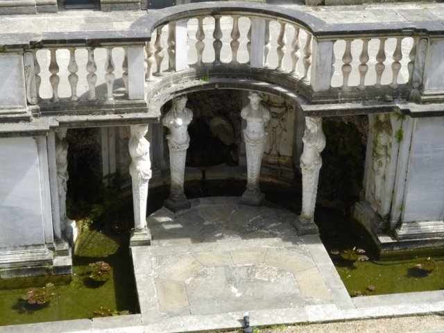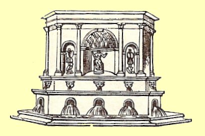 La forme de la fontaine, en arc triomphant, fait penser à l’entrée d’un temple.