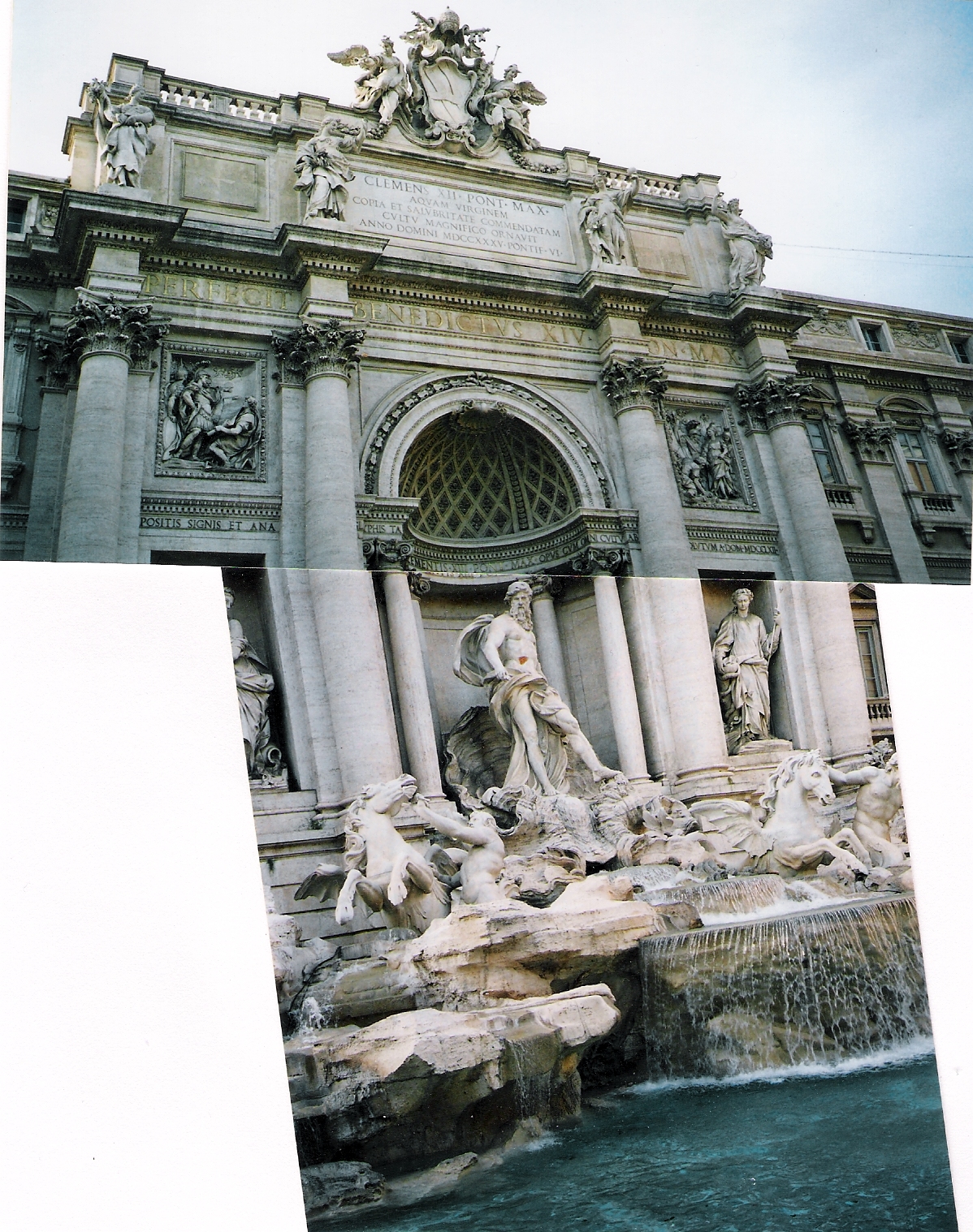 En 1731 le Pape Clément 12 organise un concours pour réhabiliter la place et la fontaine , les travaux commencent en 1732 , ils vont durer trente années et faire travailler une dizaine d’architectes .Le nom de Trevi est celui de la jeune fille qui a indiqué l’emplacement de la source aux Romainsau premier siècle avant J.C.