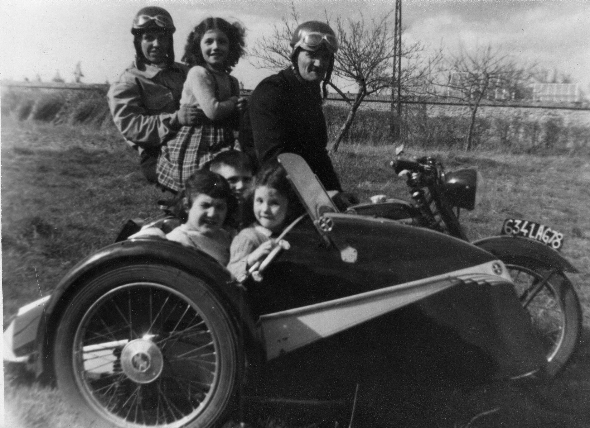 sur cette photo Roland et Paulette ( qui a Colette sur ses genoux )sont sur la moto et dans le side-car : Monique , Françoise et Michel sont un peu serrés .