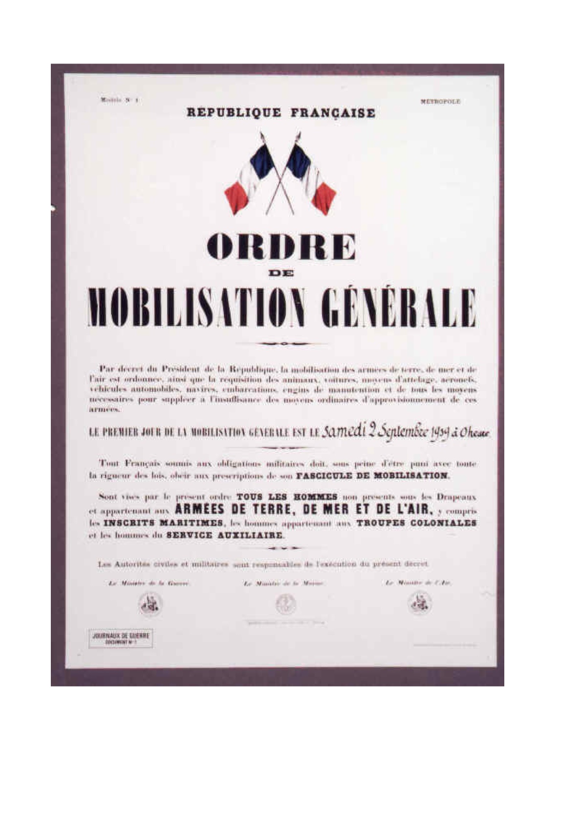 45 - Affiche de la mobilisation de 1939