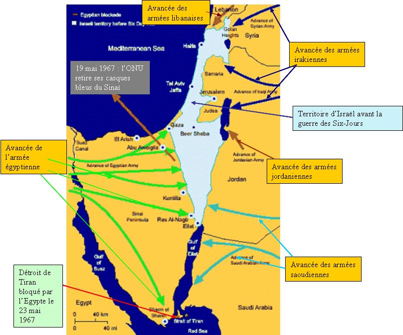 Cette guerre est déclenchée comme une attaque préventive d’Israël contre ses voisins arabes, à la suite du blocus du détroit de Tiran aux navires israéliens par l’Egypte le 23 mai 1967 ( pourtant les Israéliens avaient préalablement annoncé qu’ils considéreraient cet acte comme un casus belli).