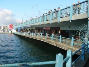Parfois nous utilisons un parking au bout du pont flottant de Galata: c’est Le quatrième pont construit en 1912 par une société allemande pour 350 000 livres d’or. Ce pont flottant fait 466 mètres de long pour 25 mètres de large.
