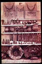 Les 9 niveaux du site ont subi des tremblements de terre , des incendies , des disparitions inexpliquées des population , des reconstructions successives : c’est la Troie 7 qui est la cité de Priam (Guerre de Troie v. - 1250),ensuite les occupations successives par les Eoliens , par les Perses , par Alexandre ,puis l’ occupation romaine par César. Schliemann en 1873, exhume un ensemble de bijoux en or, qu’il dissimule aux autorités turques et aux ouvriers, grâce à sa femme grecque Sophia, qui les passe pièce par pièce en les cachant sous son châle. Parallèlement, Schliemann découvre un grand nombre de vases, de pointes de lances et de boucles d’oreille aux niveaux de Troie II ou de Troie III (2200 av. J.-C ) voir la photo ci-dessus .
