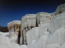 Près de l’antique station balnéaire d’Hiérapolis, non loin de la ville Denizli, dans la vallée supérieure de Méandre, la nature a créé un féerique ” Château de Coton”, en turc Pamukkale.