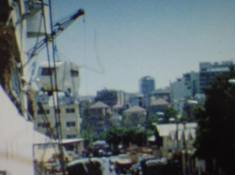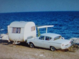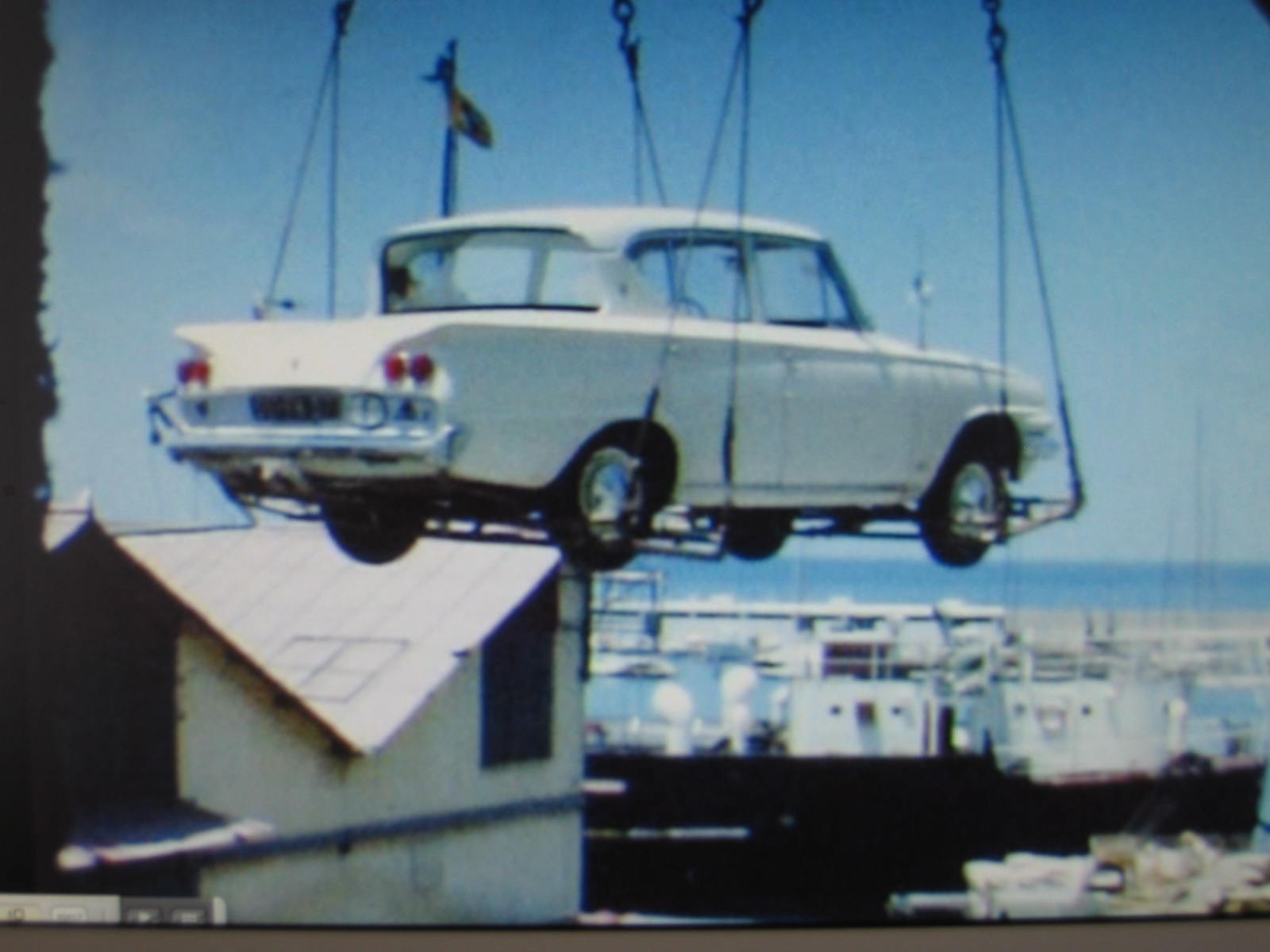L ’embarquement de la voiture se passe bien , mais quand toutes les voitures ont été hissées sur le pont , la caravane reste toute seule sur le quai . Le départ est imminent, et je descends parlementer avec les dockers , ils refusent de fixer les élingues sur la caravane sans un bakchich , je n’ ai plus un sou et je me contente d’hurler sur le quai , de guerre lasse un docker passe deux cordes autour de la caravane et fait signe au grutier, la caravane est ronde et les cordes risquent à tout moment de glisser , mais ouf , elle arrive sur le pont !