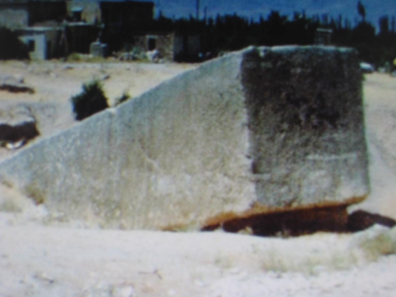 A proximité du temple , dans une carrière , un bloc de pierre taillée de 21,5 m de long et 4,20 m par 4,80m et un poids de 2000 tonnes est la plus grosse pierre taillée du monde . Ce qui laisse perplexe sur les moyens des bâtisseurs romains .